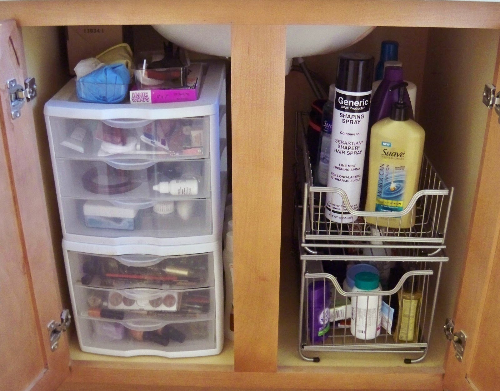 The top one is perfect for all my hair “stuff”, and a big bottle of lotion.