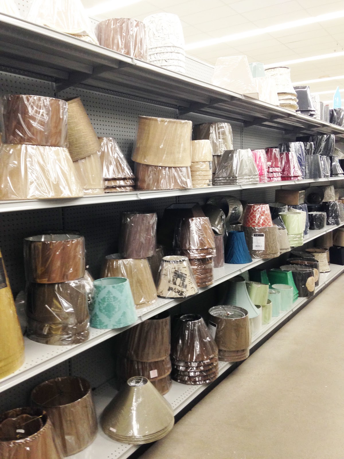 Seems like I have been shuffling lamps around all over the house. I borrowed the candlestick lamp off of the buffet in the dining area for hubby’s nightstand, so that left the buffet looking really naked. I remembered seeing quite a few when I was at “At Home” to get lampshades, so I made a trip to see what I could find. There is so much to see it is almost mind boggling.