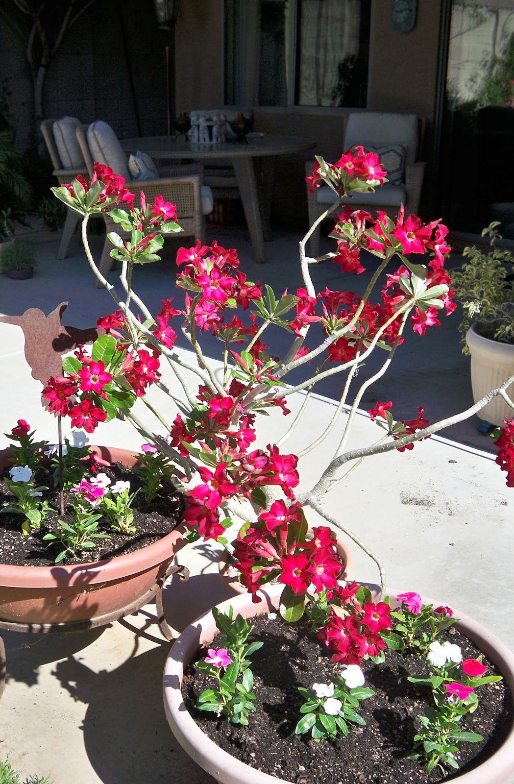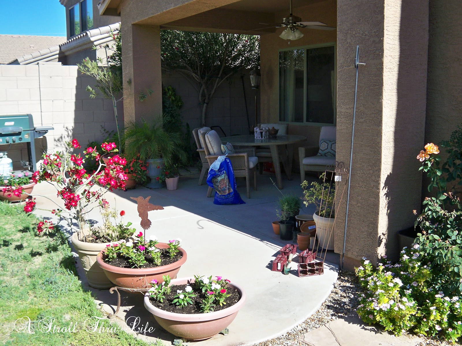 I love a pretty yard and from time to time mine looks pretty good. Right now, not so much. Hubby uses the patio as his work space, everything is done there. Sawing, repotting plants and anything else he chooses to get involved in, so it is usually a pile of stuff that is totally a mess.