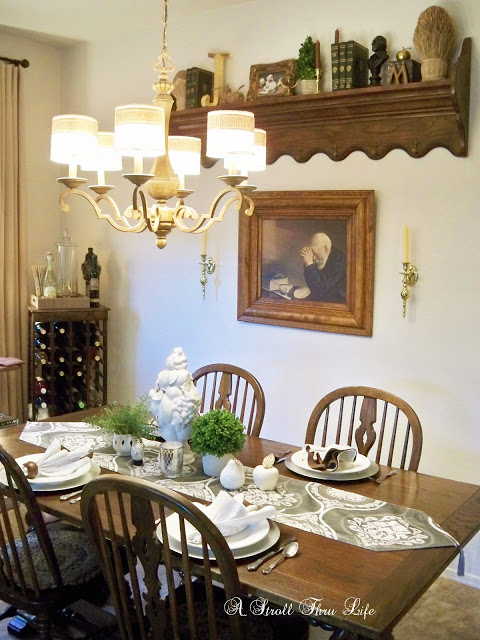 This is what I had on the wall before.  I love that shelf and thought about putting it above the mirror, but it is too big