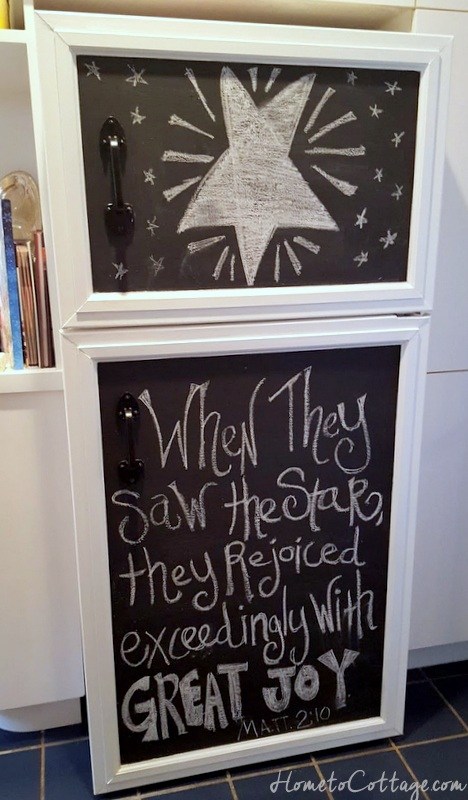 How fun is this. If you have an old fridge that you want to give a little life to, check this one out. Home To Cottage made her fun and whimsical.