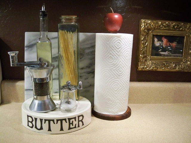 I love having these few things near the stove, so easy to just grab what I need and it is always on hand. I had several bottles of flavored oils on the butter tray, but since I didn’t use them fast enough, they spoiled. I am just keeping my Canola oil here for now. I use it just about every single day. I love having the salt and pepper grinders too.