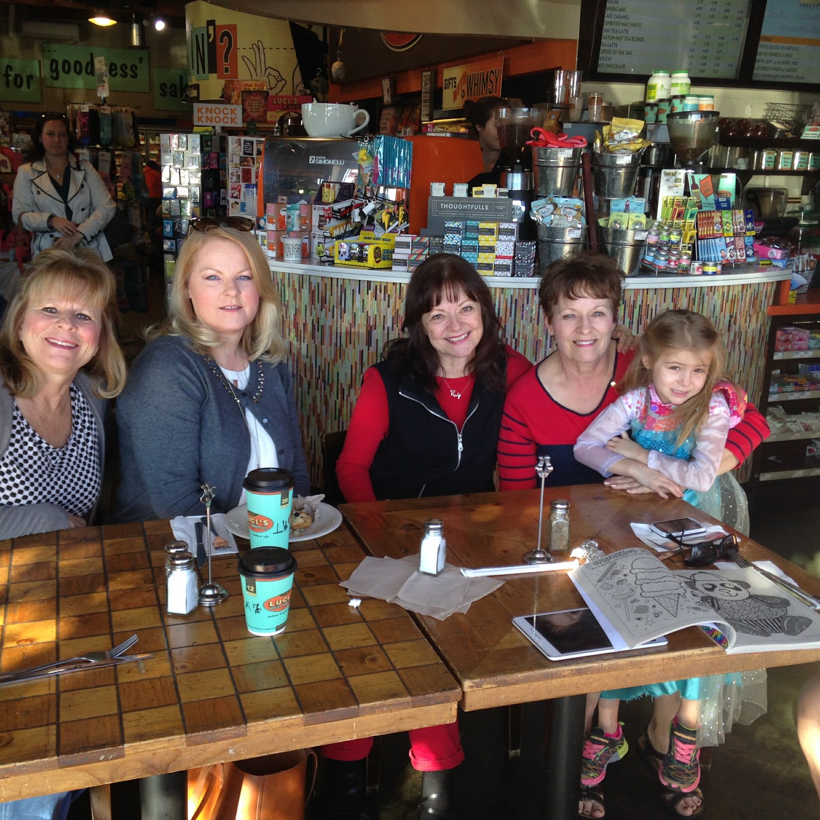 Cindy came into town to visit her son and his family, so Monday we all got together for a brunch. So much fun – -From left Jamie – Liz (Rose Vignettes) – Linda – Cindy and her grandaughter Addison.