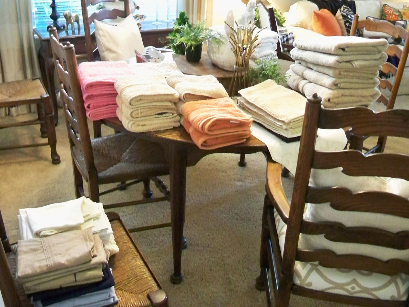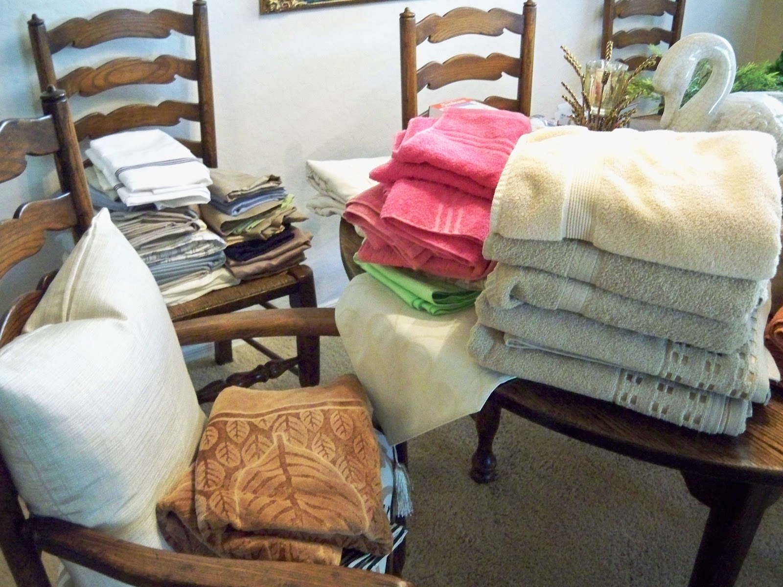 Out came everything and the purging began.  I am embarrassed to say that I had all of this in that tiny little closet.  I haven’t purged linens in years and it shows.