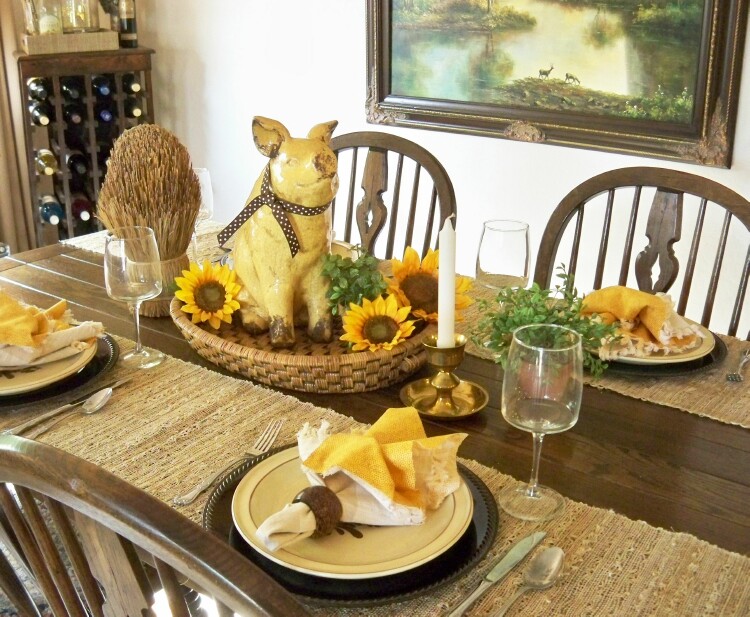 I love the sunflowers, they just look so happy. I found some fabric the same color and made the napkins. They are so easy to make, just a simple hem stitch and done.