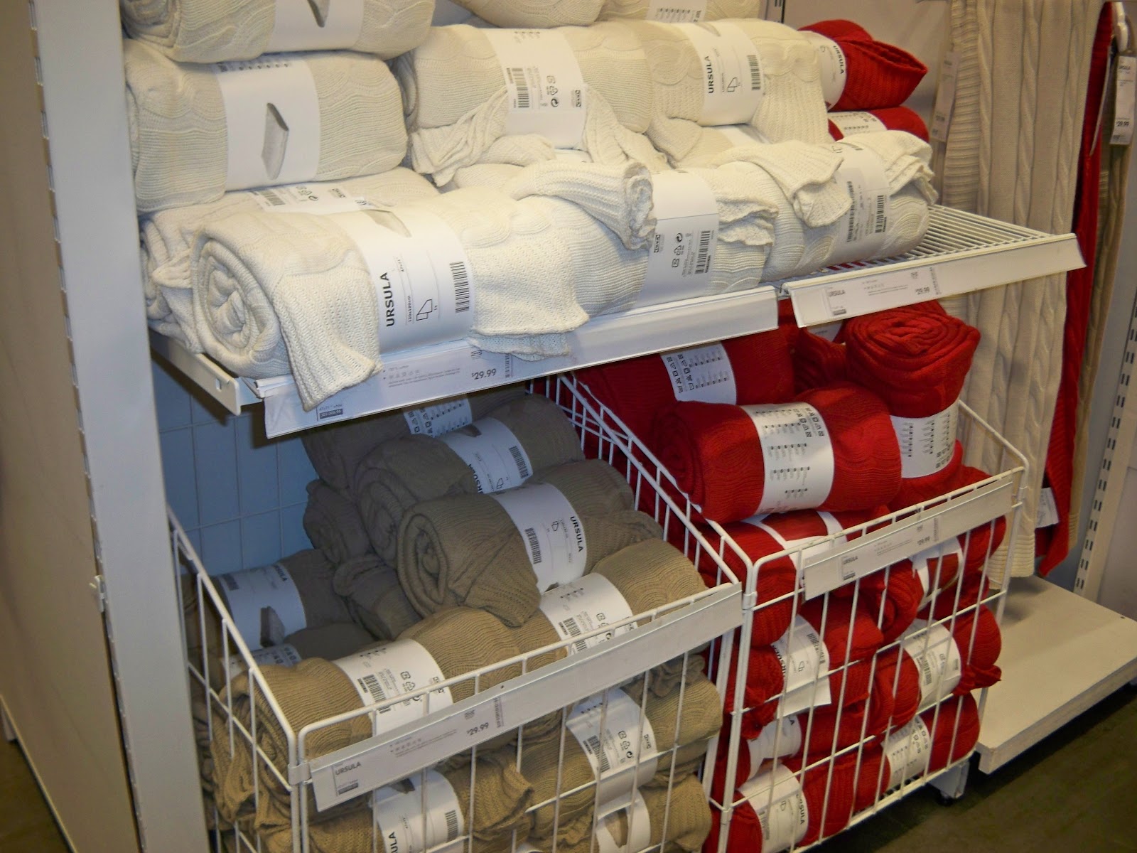 There are so many throw blankets to chose from, they are scattered all over the store. (It was so busy it was hard not to get other customers in the pics.)