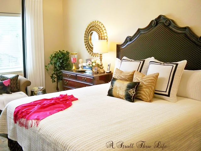 It always amazes me to see how a room evolves. The Master Bedroom in this house has been one that has taken many changes, but I think I finally have it the way I want. Thanks to a little paint, fabric and some fabulous Thrift Store finds.