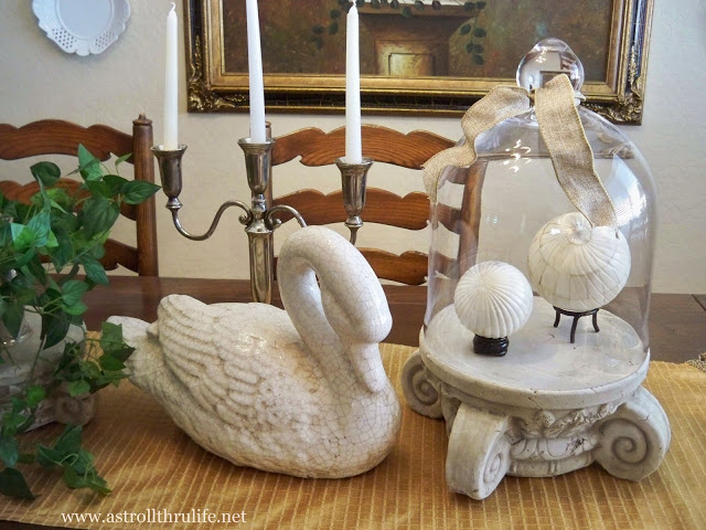 I think this is my favorite way to display my Nativity collection at Christmas. This huge cloche hold Joseph, Mary and Baby Jesus perfectly.