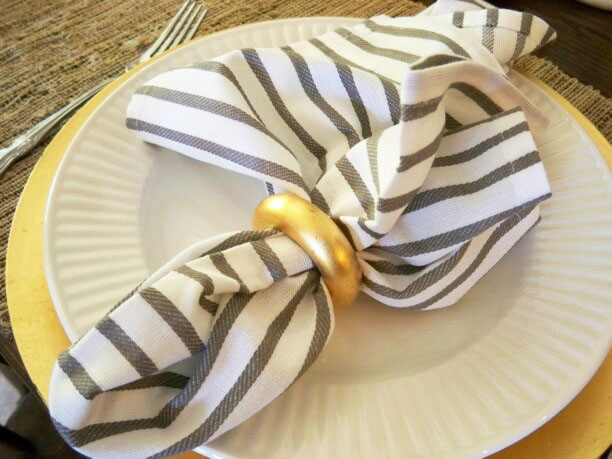 Lots of gold, white and some fabulous gray and white stripe napkins I found at Ross the other day.