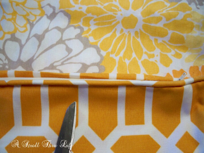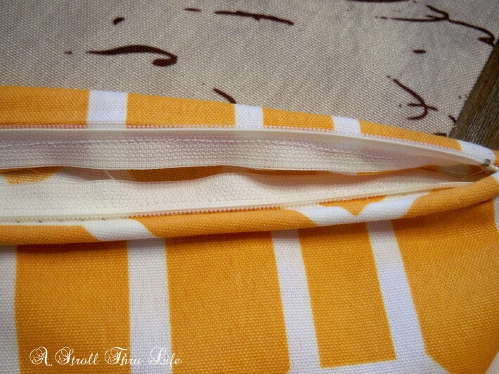 I posted this tutorial before, but for those that haven’t added a zipper to your pillows, here it is again.