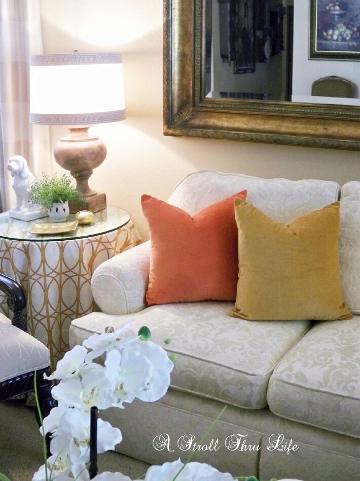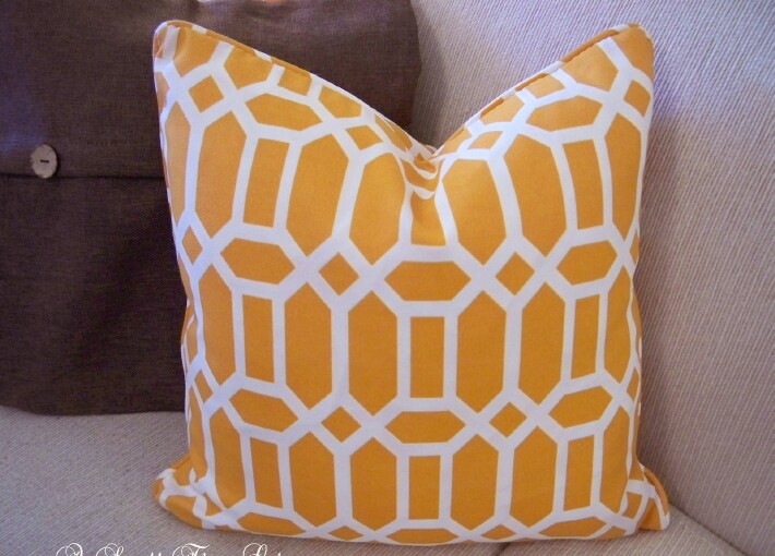 You know how you find those thrifted pillows or the ones on sale and they are fabulous, but they look like a stiff board because they are stuffed with poly. If you want them to look custom, then just make a tiny adjustment to them and they will look like expensive custom pillows.