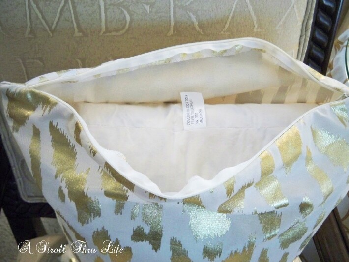 Remember the pillows I showed you that I ordered from World Market sale? They were on sale for $4.99 and $9.99. Now even at that price they happen to have a zipper. Hurrah – but they were filled with poly inserts and hard as a rock.