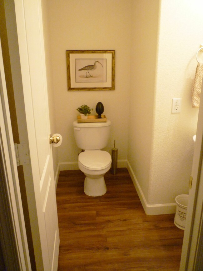 I think there is a lot I can do with this little powder room, but for now it has some new floors and a new faucet, so that is a start. I am loving the new “waterproof” floors. They look like fabulous wood, but they can take all the wet that happens in bathrooms, kitchens and any room in the house.