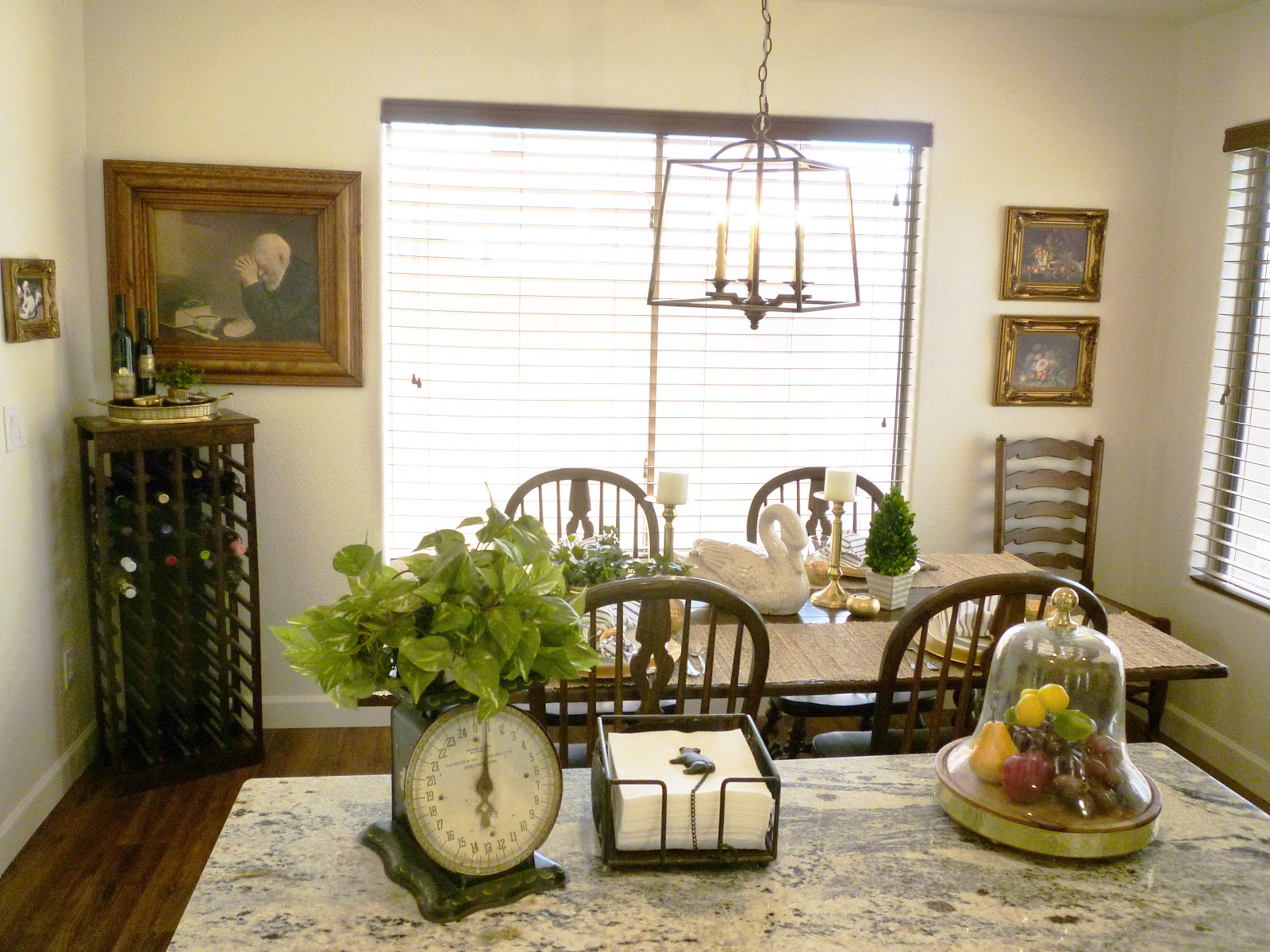 I love the big windows in this space, but it does make it a little difficult to get a picture.  This is where we eat all of our meals and where the family gathers most of the time.