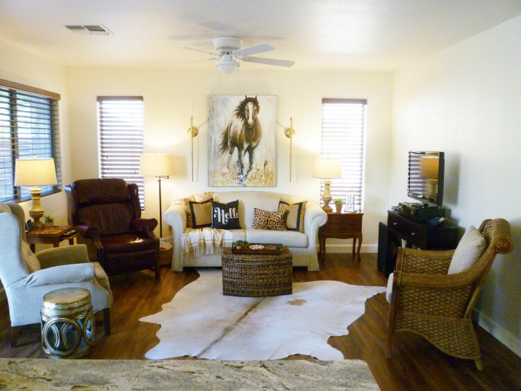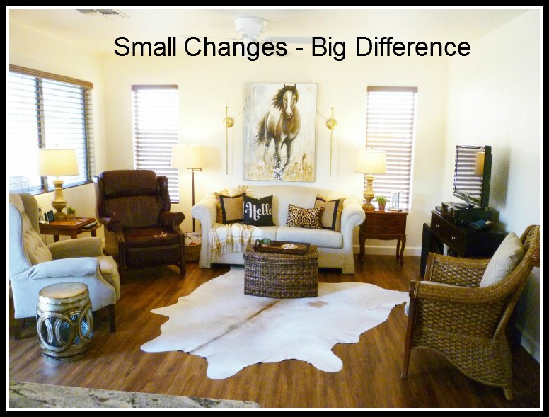 I am always amazed at how sometimes a really small change just makes so much difference. Living in the desert, AC and a ceiling fan in every room to keep the air moving are major necessities. Just the right ceiling fan can also make or break a room.