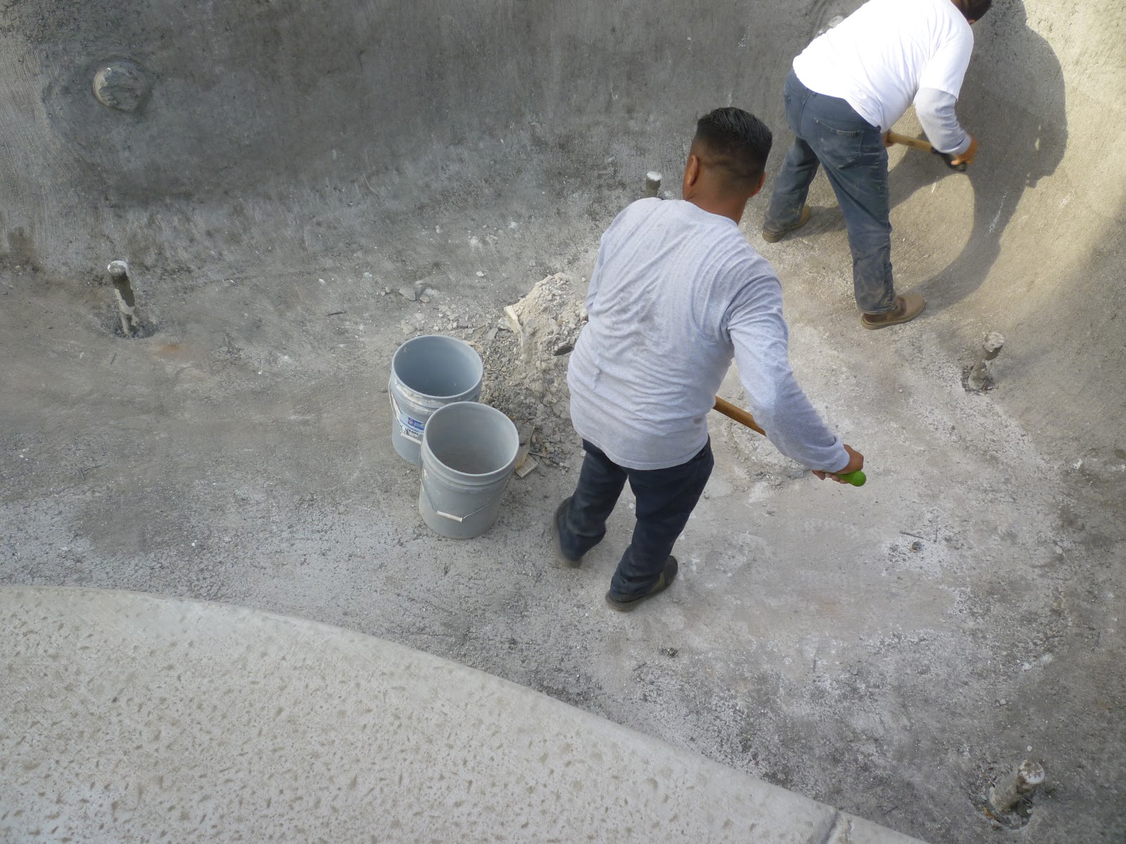 You wouldn’t have believed how much debris all these other crews dumped into the bottom of the pool. These guys had to scrape every inch of the pool with a shovel to get bits and pieces of cement, mortar and grout up, plus just plain ole’ trash.