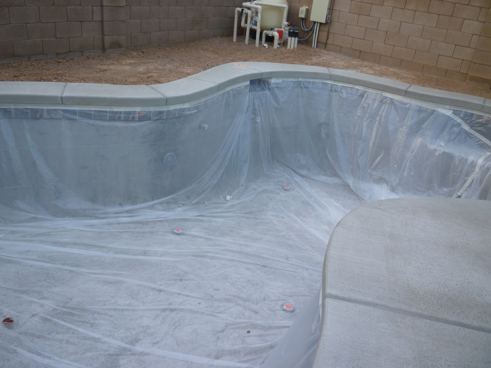 This has to sit & cure for at least 3 days, then we can do the final steps.  Monday or Tuesday we are scheduled for the inside plaster, then the next day acid wash and start filling the pool.