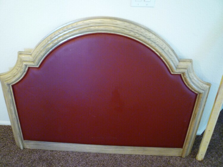 and here is the $29.50 Headboard that I just found for the Guest Bedroom.  I am in the process of staining the wood and replacing the red vinyl.