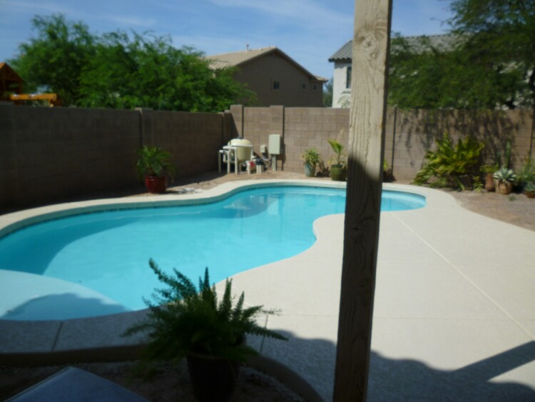 By morning it was all done.  I love it.  We didn’t want a dark pool, so we chose Caribbean Blue.  Such a pretty turquoise color.  Reminds us of the ocean water when were were there.