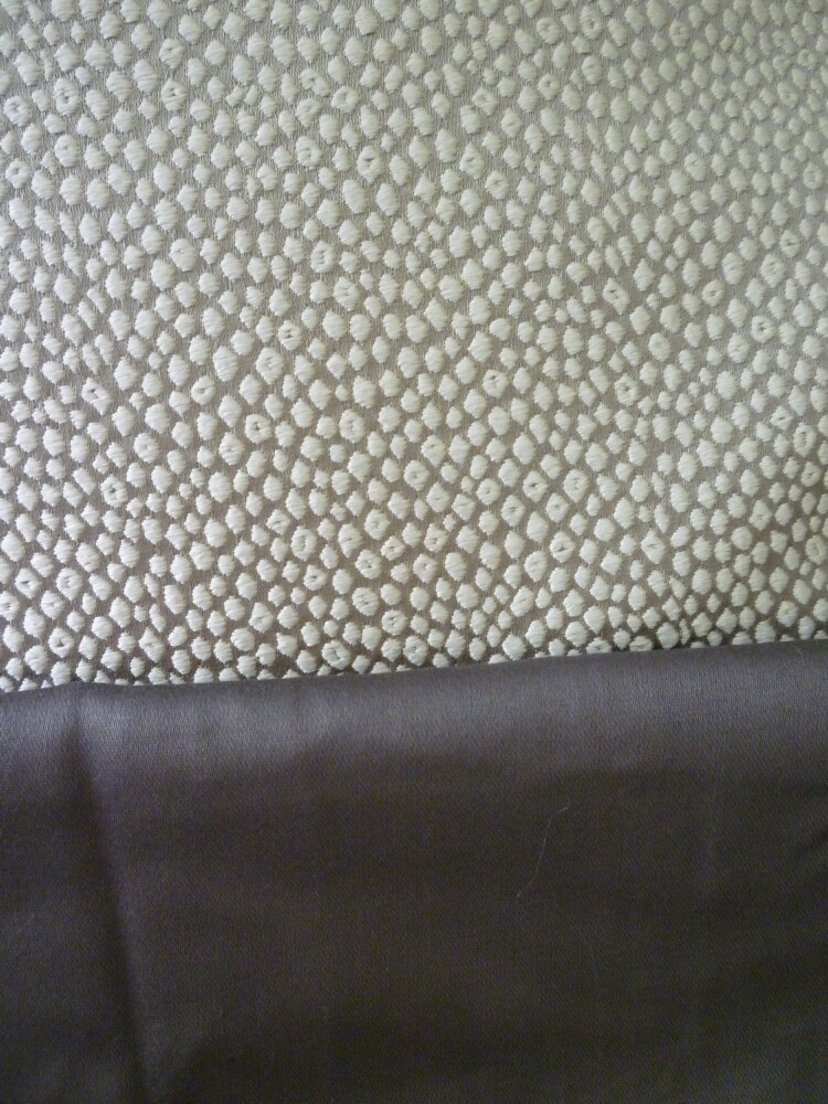 I chose this taupe/gray dotted fabric. It goes well with brown and with gray and that is what I wanted. I can change things up and not be married to one color scheme. I already had some dark gray shams, so that works too.