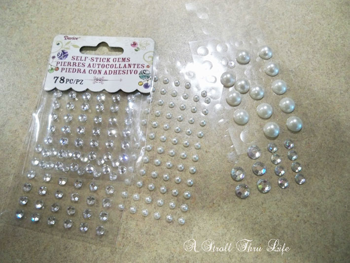 These are the stick on’s that I found in my stash along with a pack of iridescent sequins.