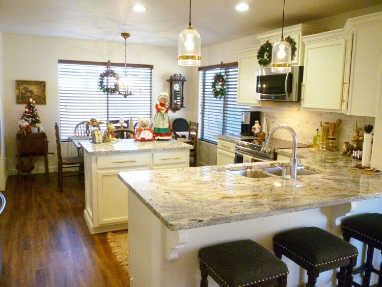 We moved in the week before Christmas last year so there was no way I could decorate this area. I was lucky to get the boxes out of the way in time for my family to be here Christmas night. Since we had lived far away from them for 12 years, I couldn’t wait to have them all here and celebrate Christmas. (In case you are new, here is what the kitchen looked like when we bought the house,)