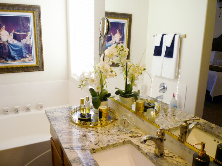 I thought I would switch up the bathroom counter a little bit with this pretty tray that I’ve had for a while. It is the perfect piece to showcase my new treasure.