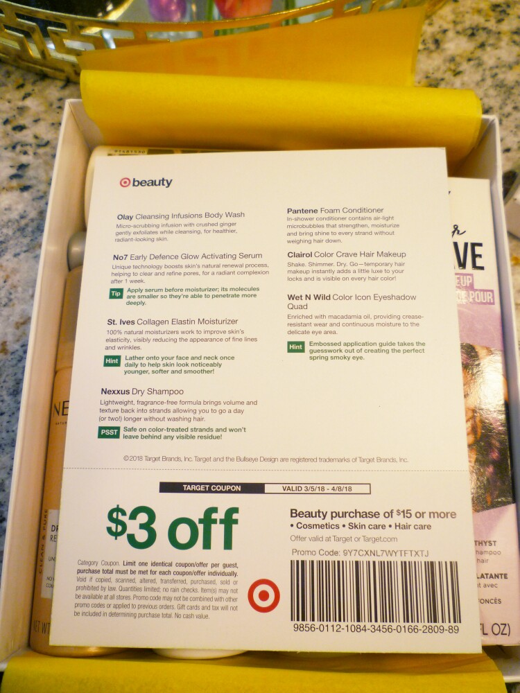 Do you like to try out different beauty products from time to time.  I do and I am loving these Beauty Boxes from Target.  There is a different one each month and they always have an amazing assortment of products to try.  Several are full size and the price is unreal at only $7.  This is the last one that I got.