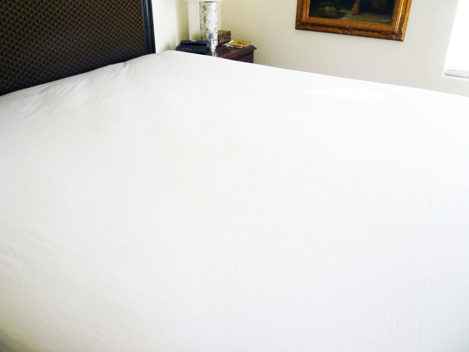 I like to start with a new or fresh washed mattress cover. Everything nice and clean and fresh.