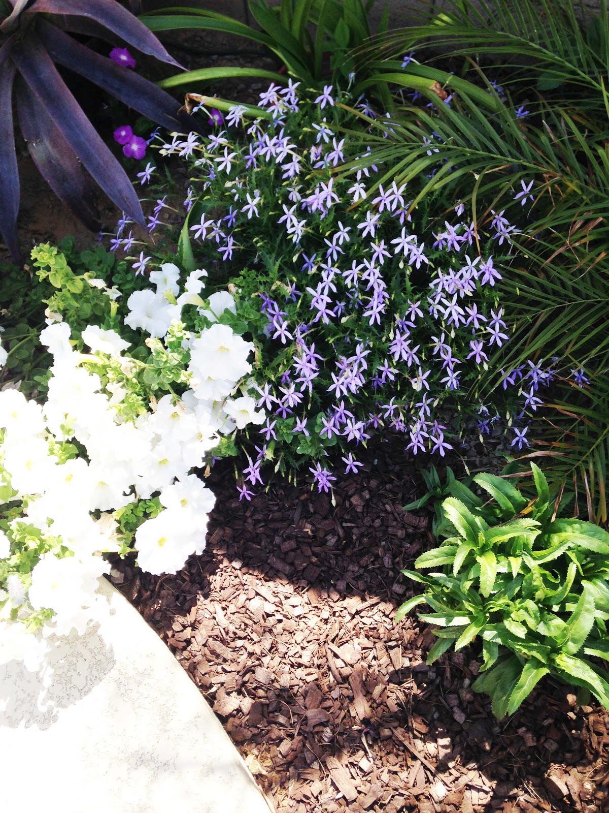 The backyard is getting some clean up too and getting ready for swimming weather.  Hubby has been putting down tons of mulch around the pool flower beds.