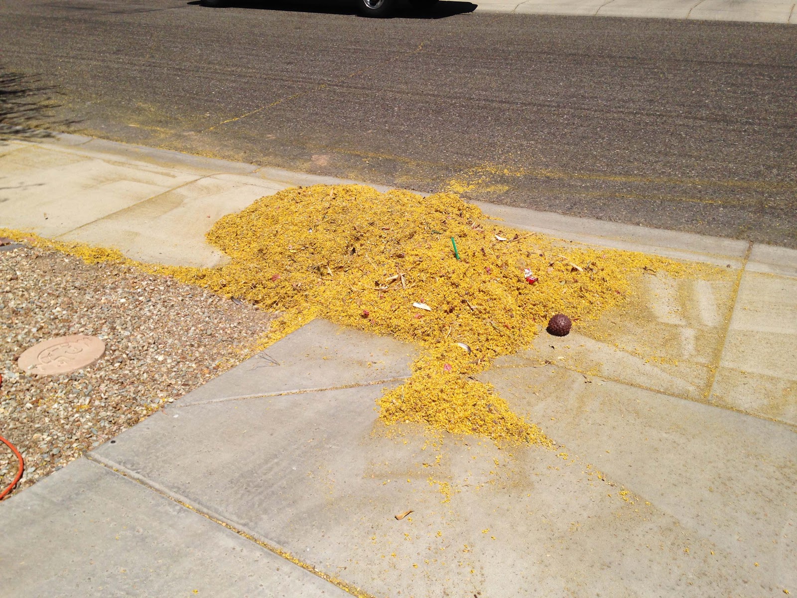 This is an over foot tall pile of flowers hubby just blew off the yard.  (They do make a ton of flowers and they can be a real mess if you don’t keep after them.)