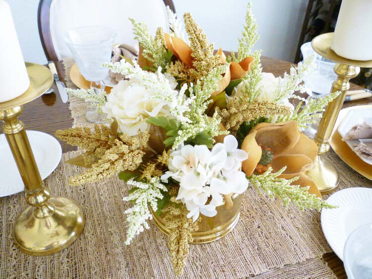 I reworked a floral arrangement I already had and added in some camel colored sprigs with a couple of camel colored magnolia flowers.