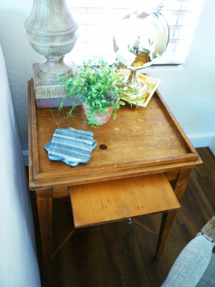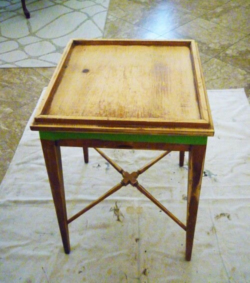 I am slowly chipping away at a few projects that I have been wanting to get done. I am going to have back surgery soon, so there is a lot I can’t do at the moment, but I thought if I was careful, I could maybe refinish an end table that needed some attention badly.