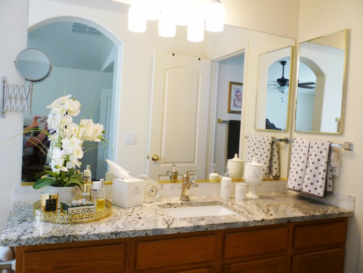 I have been wanting to redo the master bathroom every since we moved in, but it is still on the bottom of the to do list. However a little refresh is always a good idea and makes it feel sort of new don’t you think?