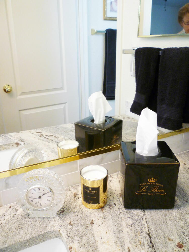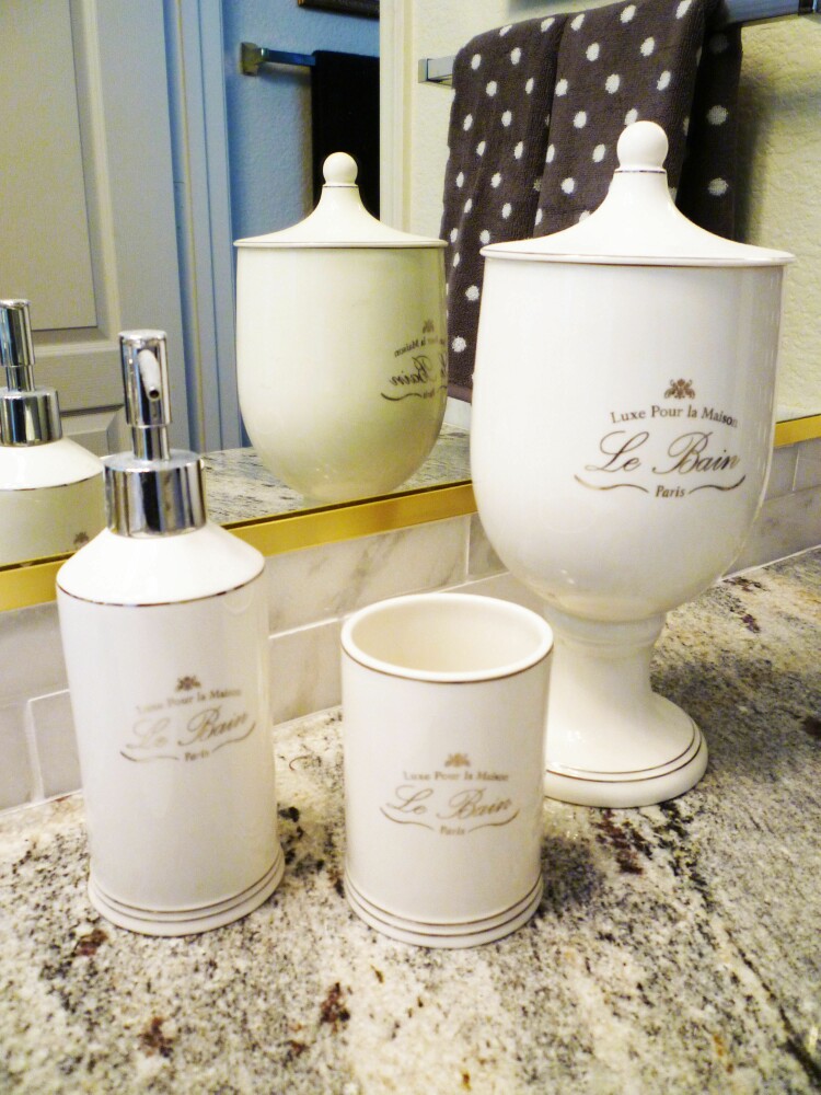 Now it so happens that I also have this set in white. I have been using the white in the hall bathroom so for a little change I thought maybe it would be fun to switch them.