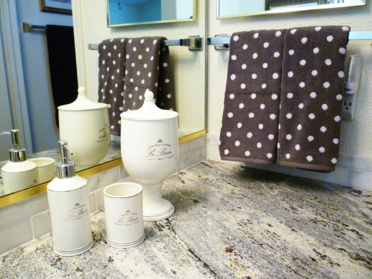 Well, I guess I have to confess what sparked this whole switch around are these really cute charcoal and white polka dot towels that I found. I just thought they were so fun.