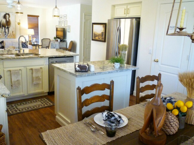 Welcome – Just inside the front door is a library table that serves as our Entrance Table. When you enter our home you step right into the living/dining area, so I love having this table as a place to drop my keys, packages, purse and shoes. I am a barefoot gal, so off come the shoes first haha