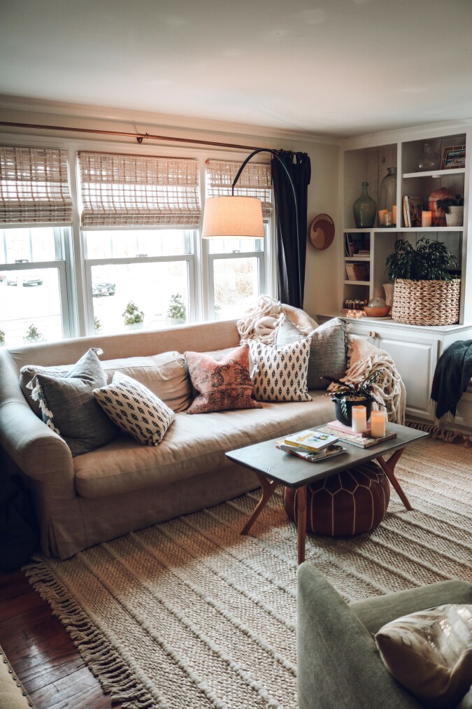 I kept the coffee table really simple with just the tulips, a pretty bowl and a candle.
