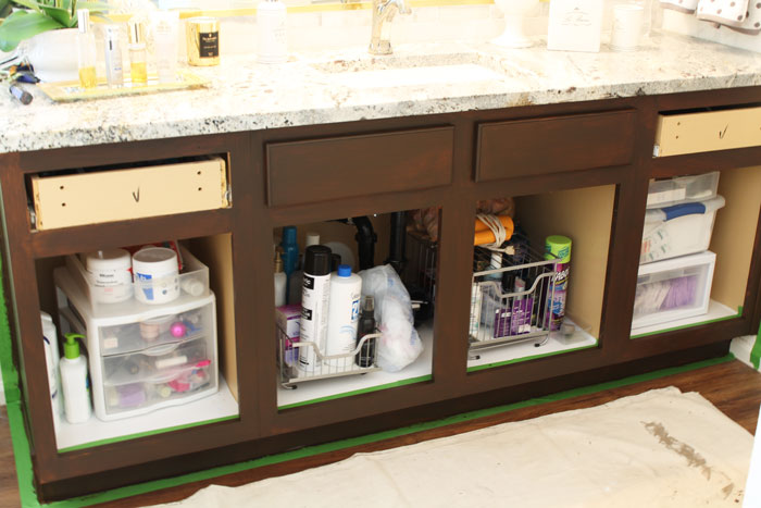 I have been planning to do a makeover on this vanity ever since we moved in two years ago. It wasn’t #1 on my to do list, then I had back surgery so that made me take a year off, but