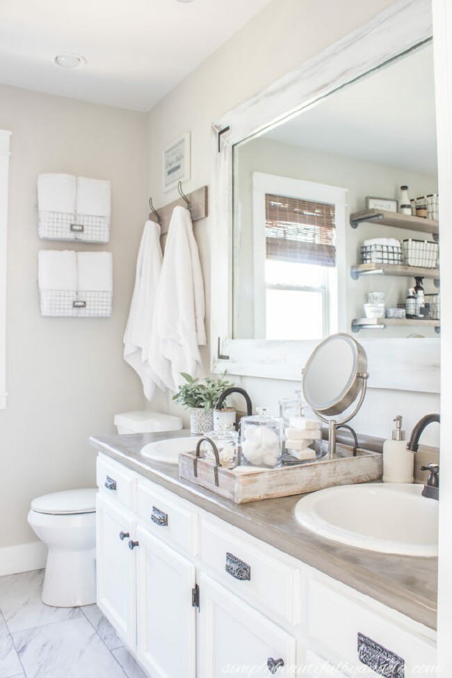 I love this Bathroom Makeover and she also shares this wonderful step by step tutorial on how to install Grouted Vinyl Tiles.   I didn’t know there was such a thing, but these are wonderful.  Her floors look like marble, so pretty.