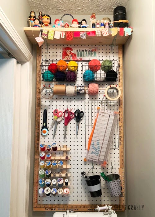 If you have a small space for some craft and sewing supplies, then this pegboard solution is perfect.  I need to make one of these too.