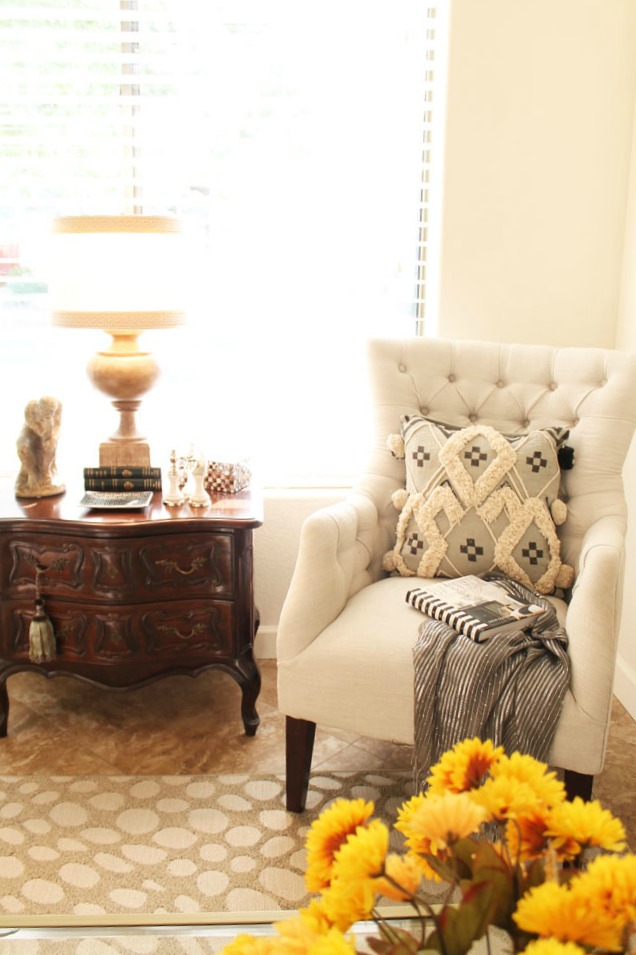 Your home looks so cozy and chic for fall, Marty! Love all the pretty flowers and cozy touches! xo