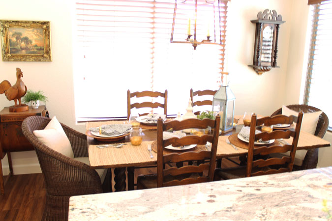 LOVE your Fall color palette, the gold and gray look perfect together! you have so many wonderful touches, the wicker chairs at your farm table are gorgeous!