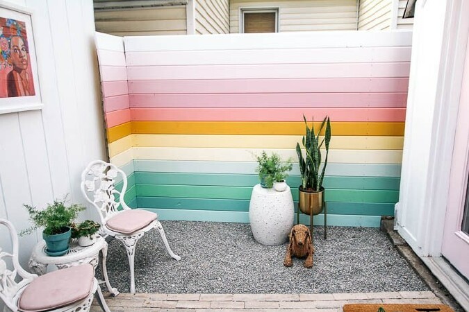 If you have an ugly spot you want to clean up and create a space you can enjoy, try this idea. Rainbow Fence. Check out what this eyesore looked like before.
