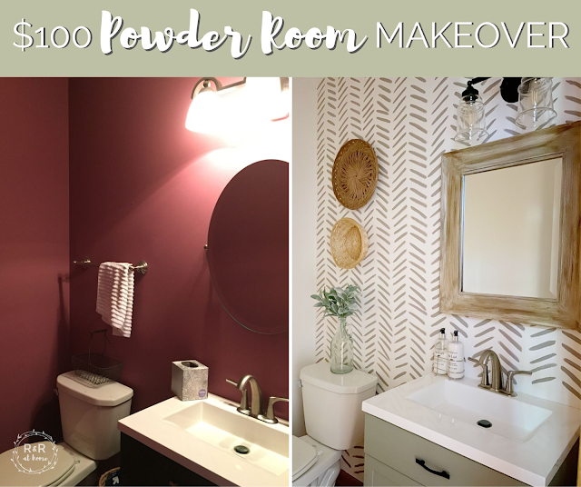 I absolutely love this Powder Room Makeover. Be sure to check out how she painted the accent wall – no that is not wallpaper.