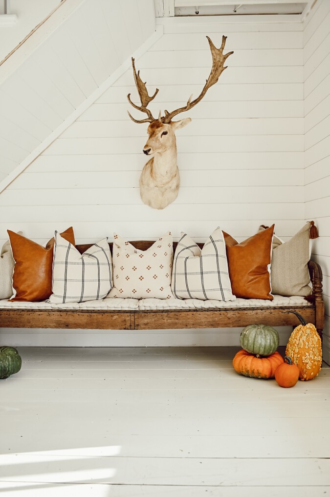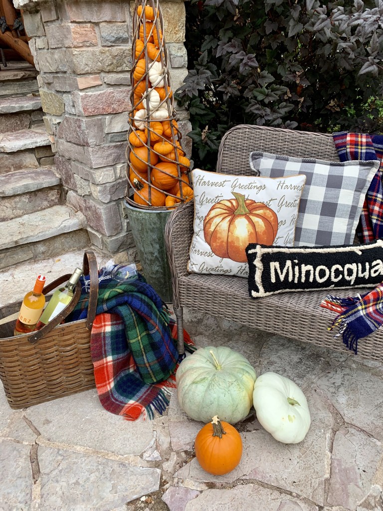 You need to go check out every detail of this pretty Fall Porch. (This is just one corner)