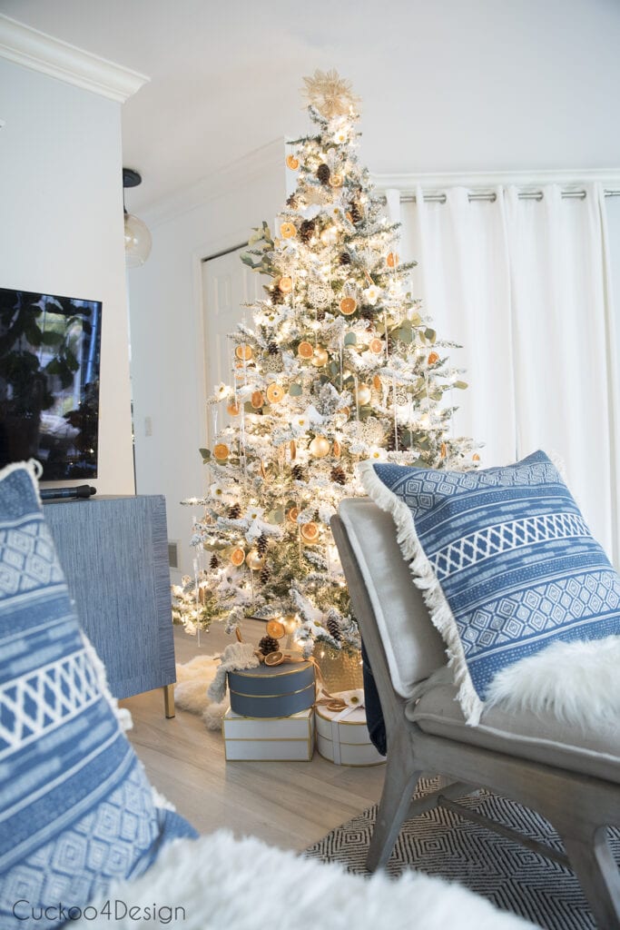 I love that she decorated her tree to showcase her German heritage. Love the dried oranges, how pretty is this.