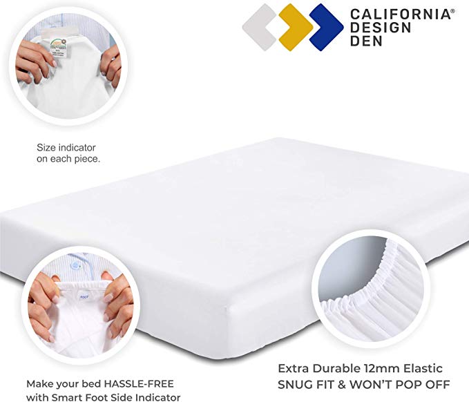 400-Thread-Count 100% Cotton Sheet Pure White Queen-Sheets Set, 4-Piece Long-staple Combed Cotton Best-Bedding Sheets For Bed, Breathable, Soft & Silky Sateen Weave Fits Mattress 16” Deep Pocket – By California Design Den.