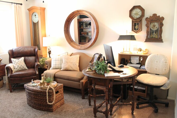I really enjoy my “girl cave/office”.  It has plenty of room to relax.  I like to plan out my post ideas for the month and make sure I have any Collaborations, Tours or Link Parties scheduled and get my ideas together for those posts.  Depending on what is scheduled for the week, this can take a few minutes to a couple of hours.