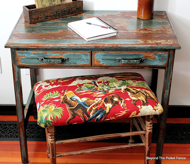 No thrift shopping or yard sales, but look at this fabulous roadside desk she found and redid.